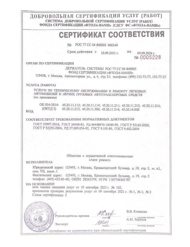 Организация располагает штатом опытных автотехников: у нас выполняют заправку кондиционеров, кузовной ремонт, покраску и полировку кузова, ремонт автостекол, тонирование автостекол, тюнинг, шумоизоляцию салона, ремонт дисков. На услуги мастерской дается гарантия, срок которой зависит от вида работ и использованных материалов.